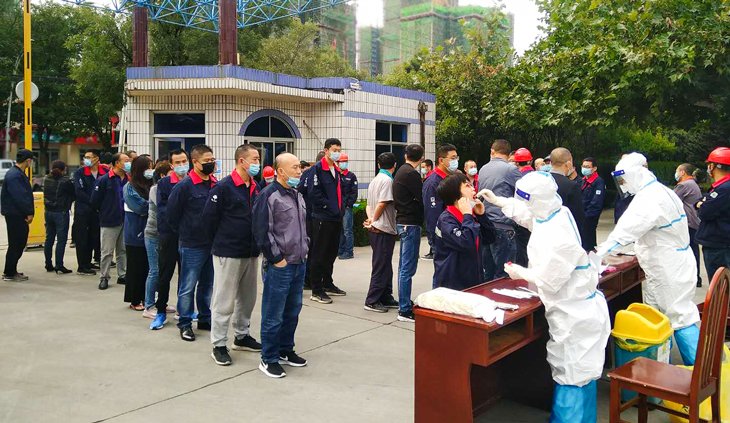 在全體員工共同努力配合下,青島宏泰銅業(yè)有限公司臨時檢測點(diǎn)核酸檢測任務(wù)順利完成。同和黨委及檢測醫(yī)護(hù)人員對我公司的工作配合及全員協(xié)調(diào)組織能力給予了高度稱贊!